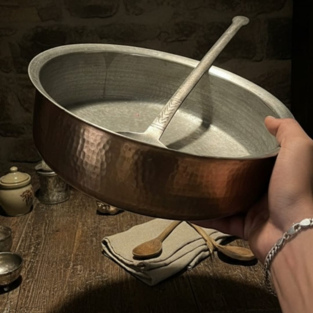 1966 Antique Brass Patila with Langadi 4L | Classic Brass Kitchen Décor Piece