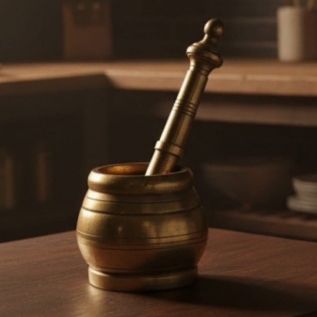 1974 Antique Brass Khalbatta | Heavy Brass Mortar and Pestle Set