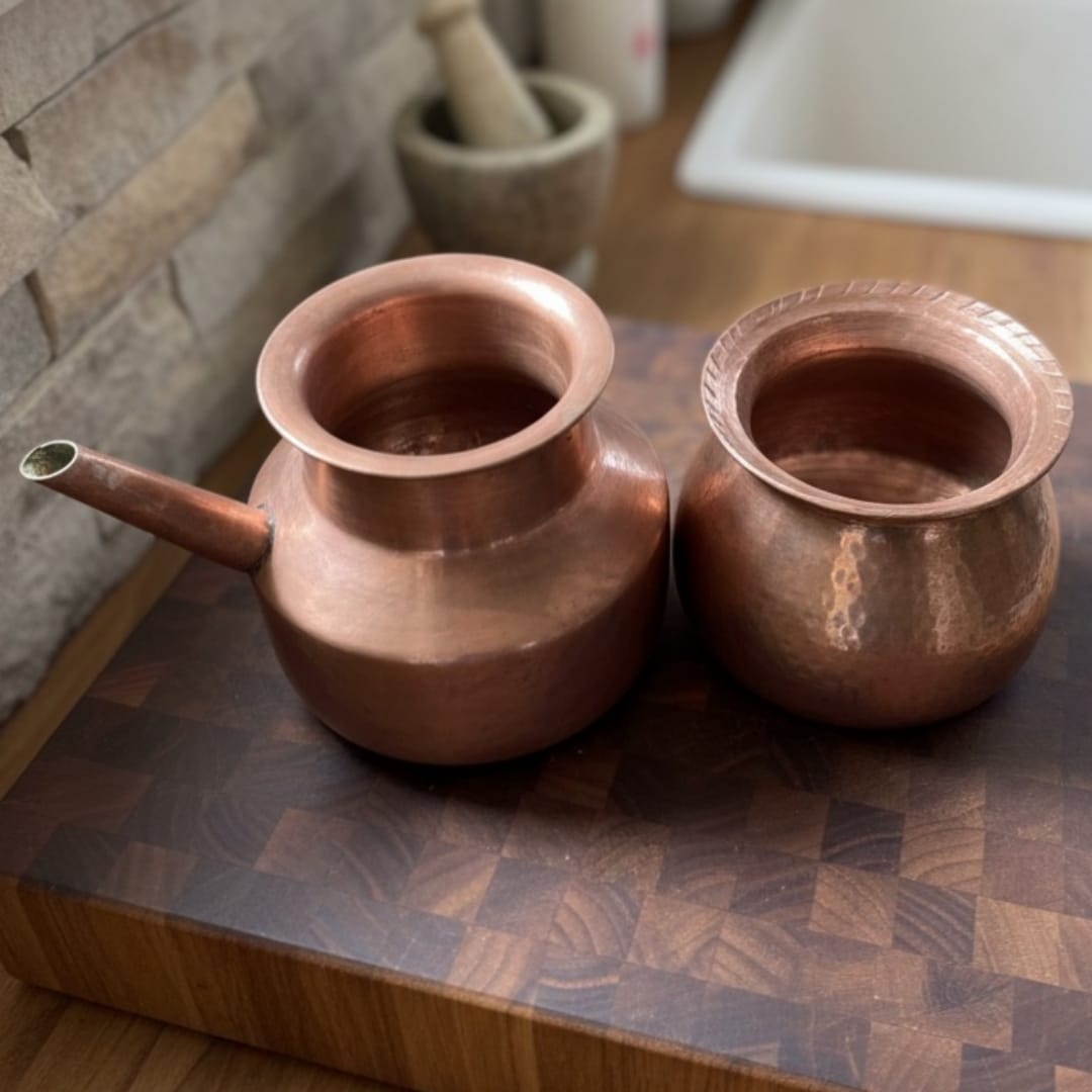 1978 Antique Copper Kalash and Kamandal Pair | Traditional Copper Vessels