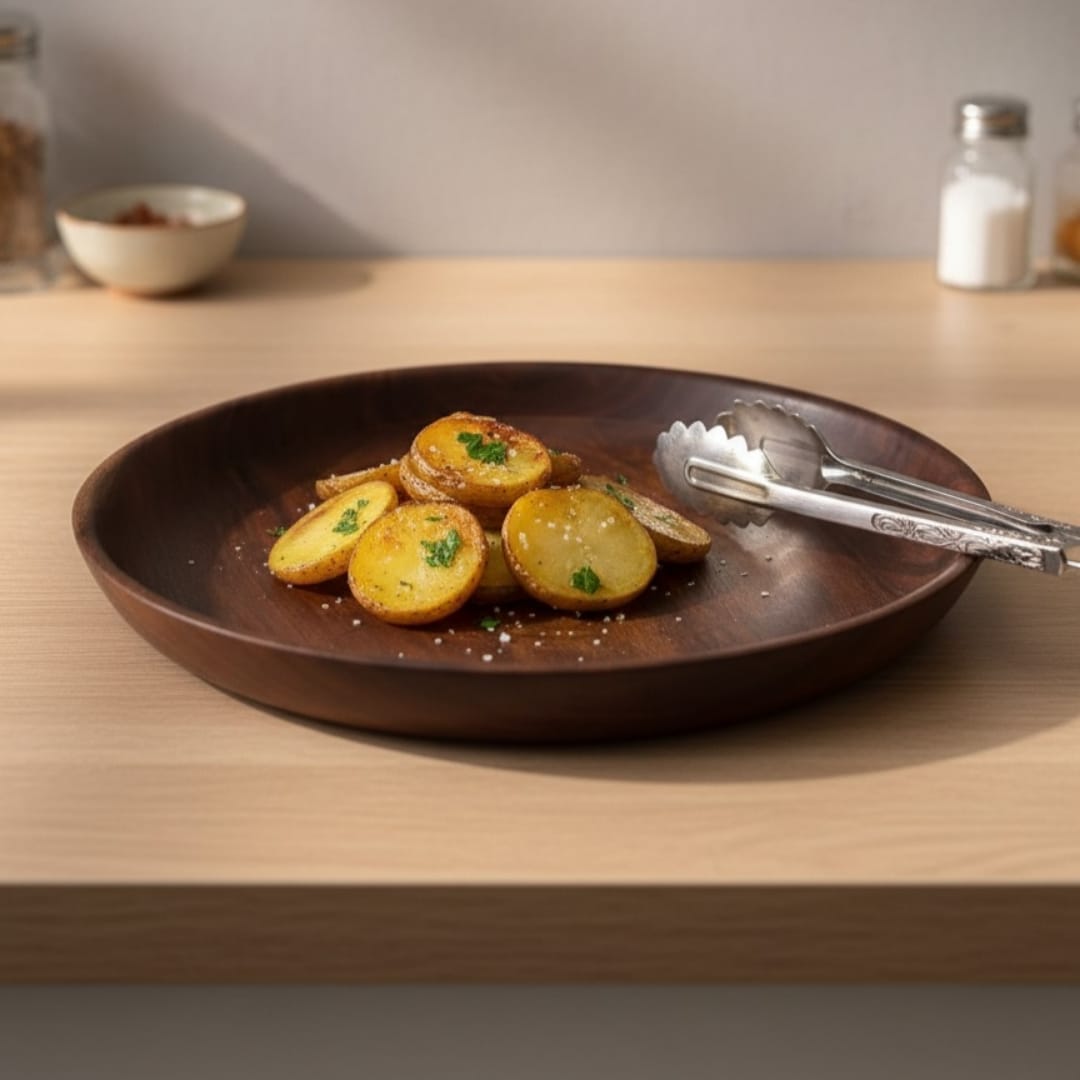 This plate is suitable for serving snacks, dry fruits, breads, or main-course accompaniments. It can also be placed on dining tables as a base for bowl arrangements or used as a decorative wooden accent on consoles and shelves. The wide 14-inch surface allows generous presentation while maintaining a clean, structured look.