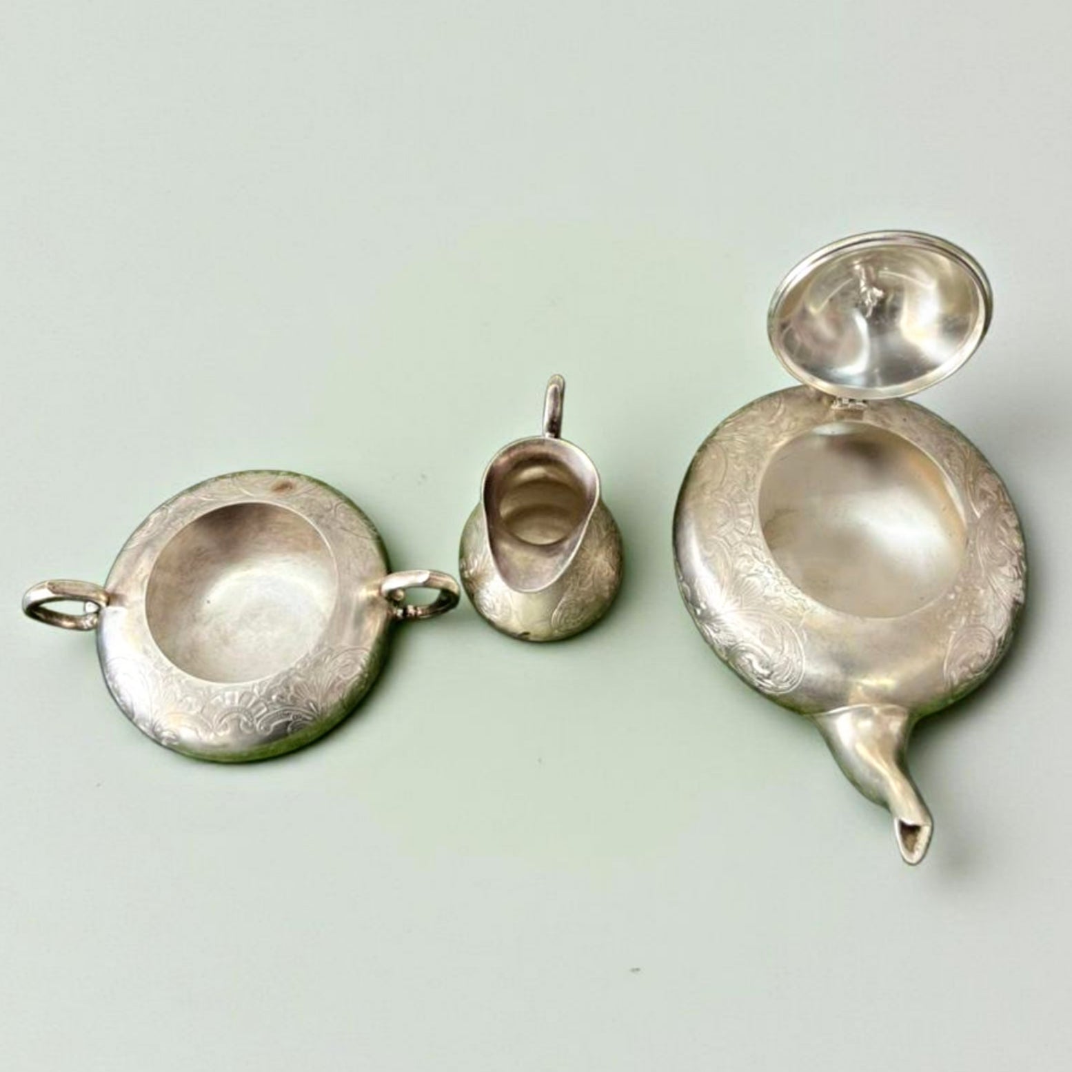 1985 Antique Brass Silver-Coated Tea Serving Set with Siders | Traditional Tableware & Décor