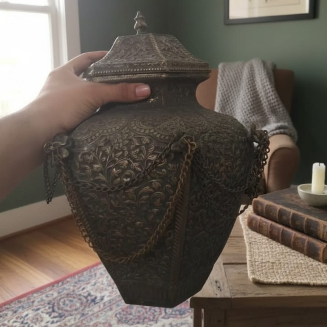 This spacious box is perfect for storing documents, textiles, or household essentials, while its silver-coated surface makes it a standout decorative piece. It can be displayed on shelves, tables, or counters, adding a striking brass accent to interiors while keeping items neatly organized. Its commanding presence and refined finish make it both functional and ornamental.