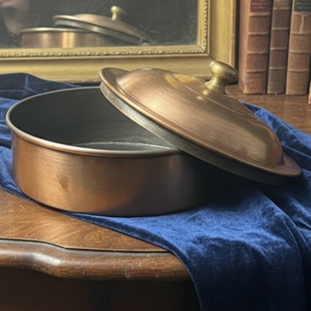 1987 Antique Brass Small Chapati Box | Compact Brass Roti Storage Container