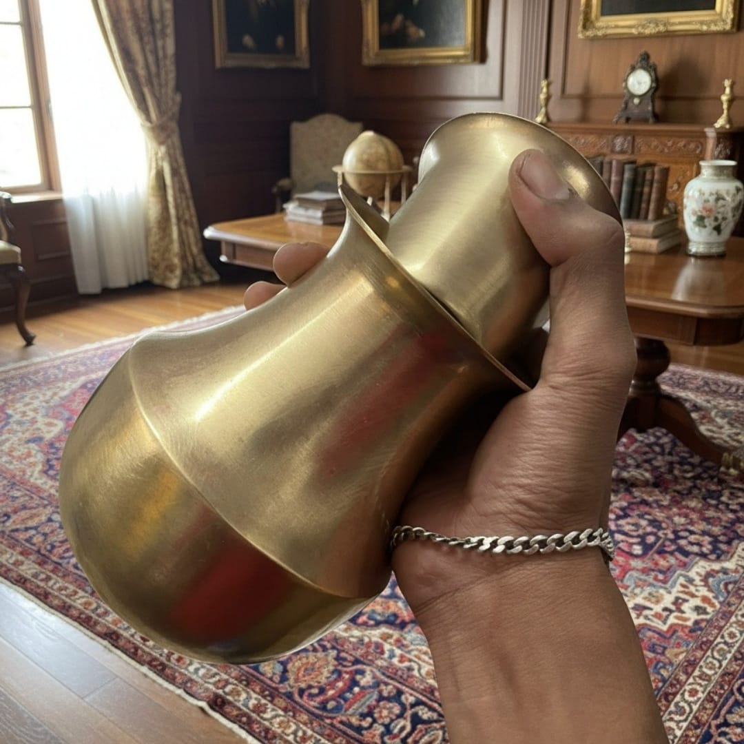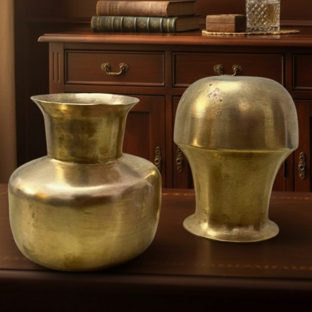 1988 Antique Brass Kalash Pair with Pyala | Ritual Vessel Drinking Set