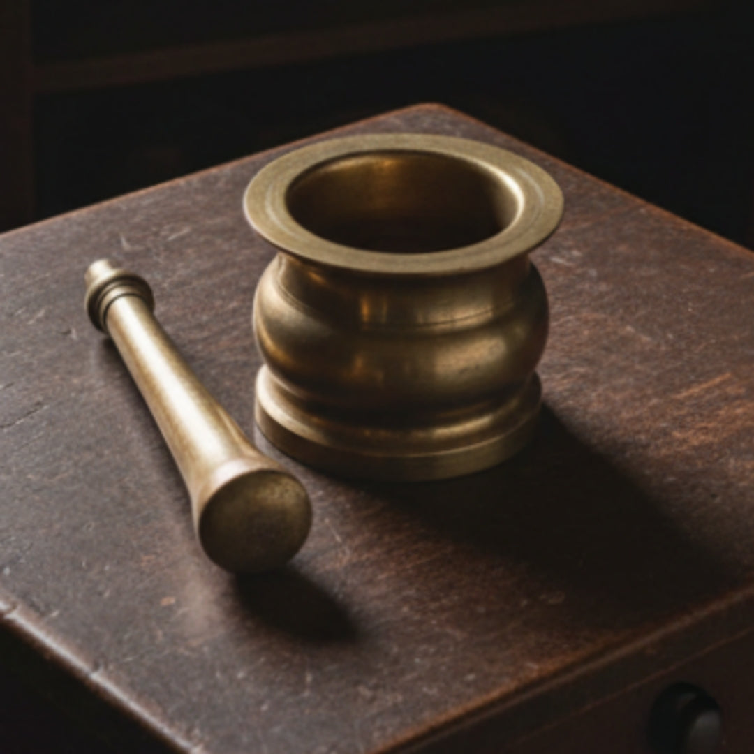 1990 Antique Brass Khalbatta | Traditional Grinding Tool