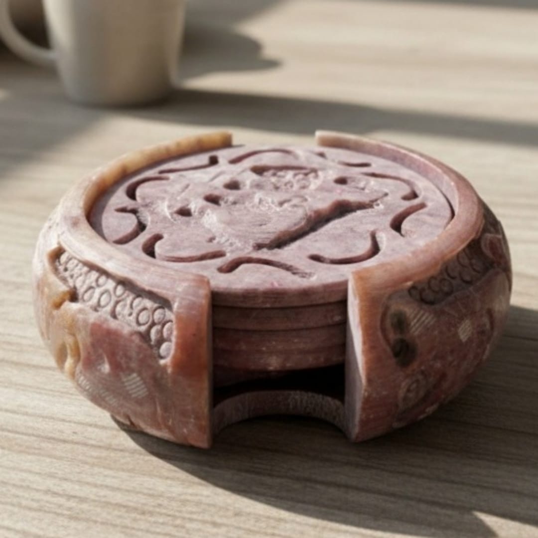 1991 Antique Stone Coasters | Elegant Natural Stone Table Accents