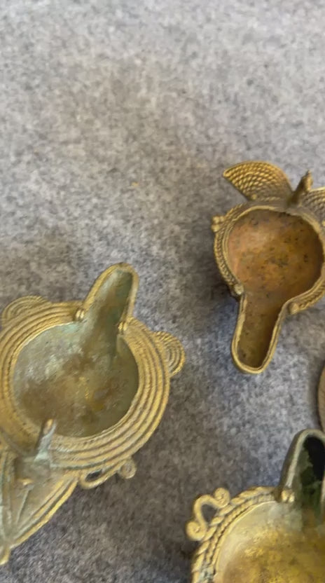 Antique Brass Engraved Diya Set of 4 | Decorative Brass Lighting Set | Made in 1970