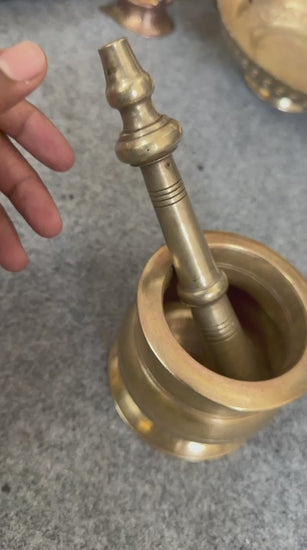 Antique Brass Heavy Khalbatta | Brass Mortar and Pestle Set | Made in 1963