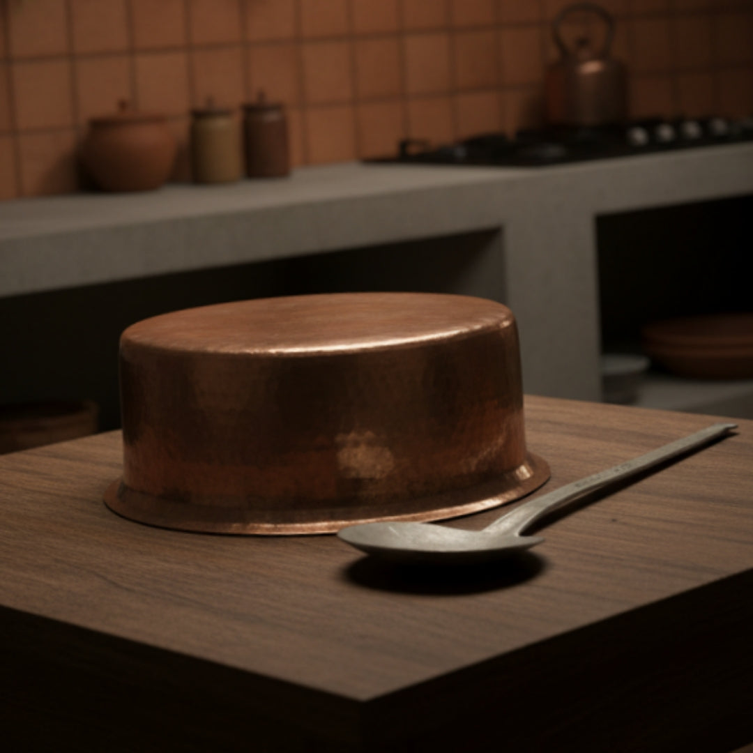 With its aged brass finish and sturdy build, it serves beautifully for kitchen styling, festive serving, or as a statement heritage décor piece. A true collectible reflecting India’s timeless culinary culture.