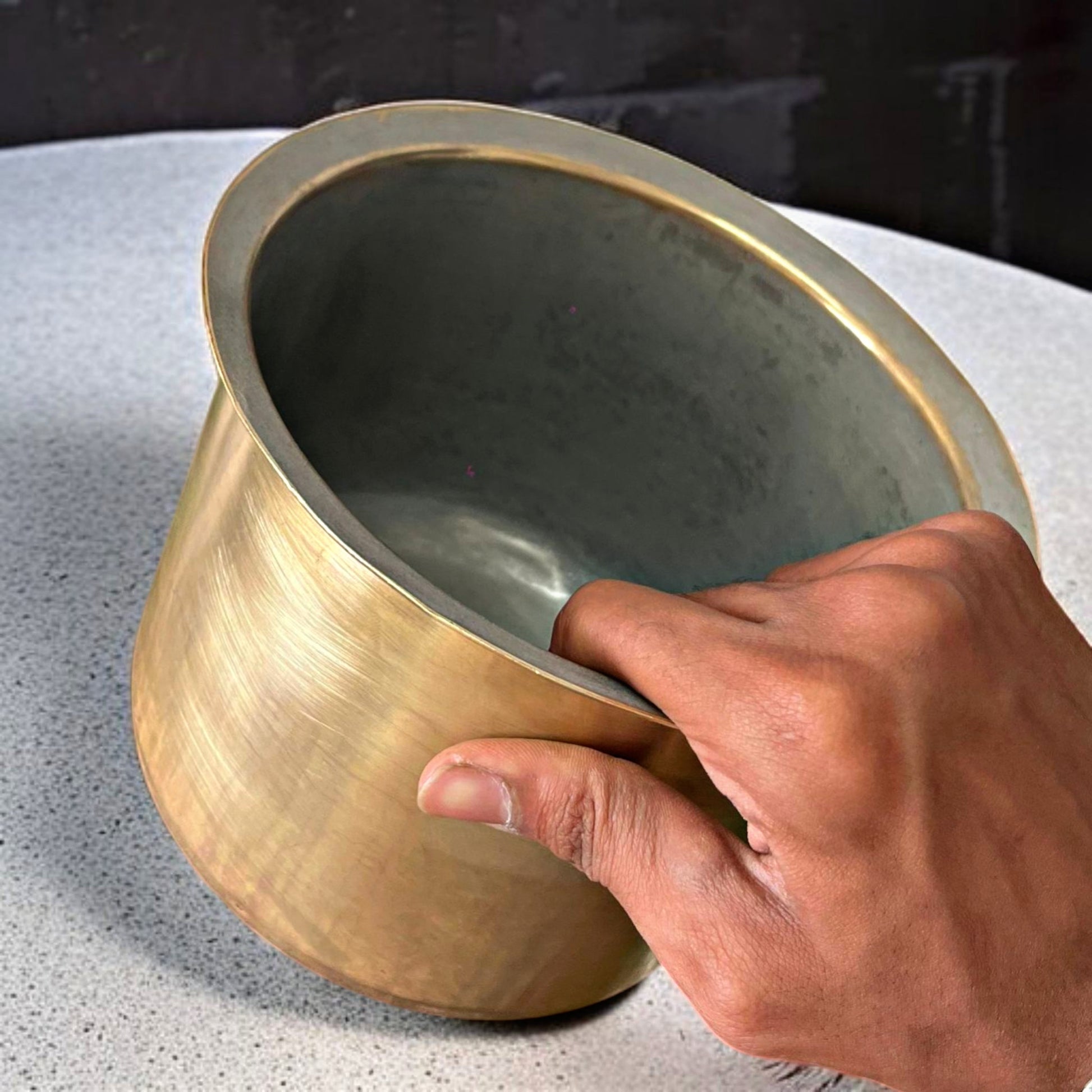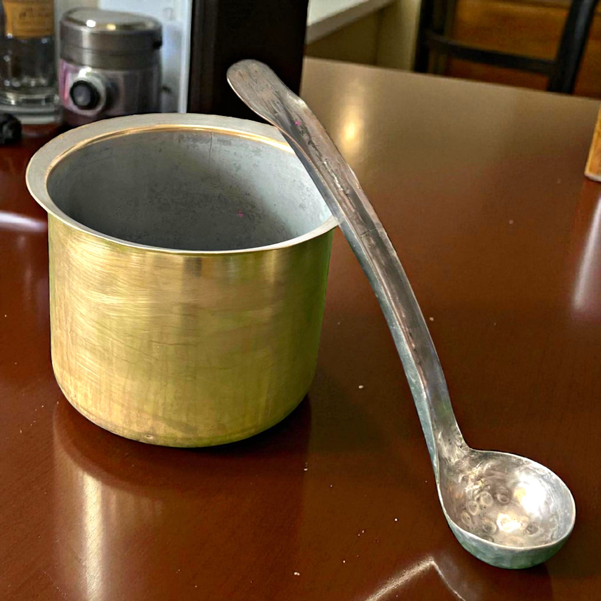 Antique Brass Long Bowl with Ladle | Traditional Cooking & Serving Kitchenware
