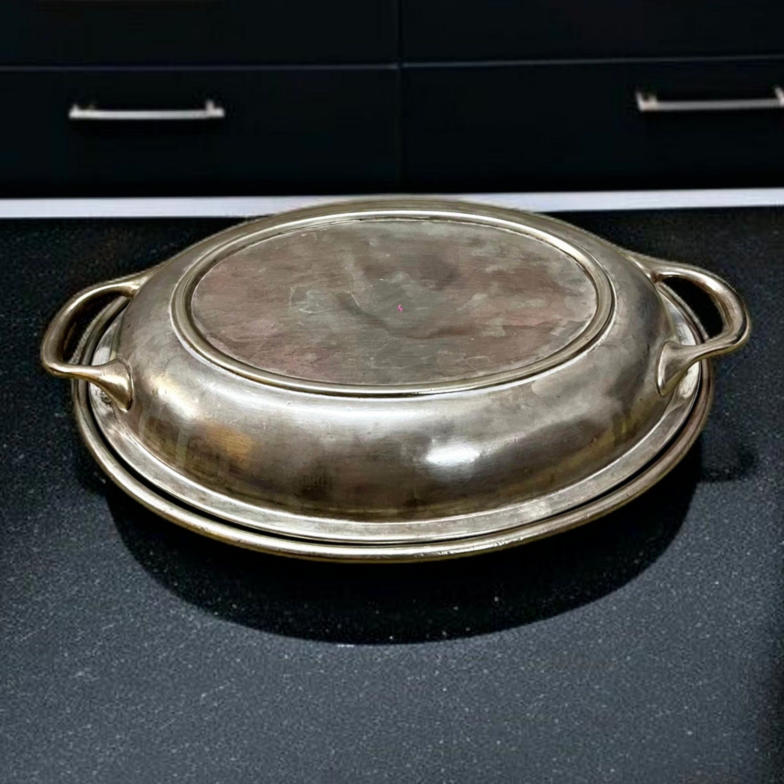 Antique Brass Silver Coated Dish with Lid & Spoons | Traditional Serveware & Decor Piece
