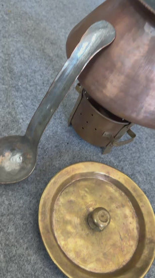 Antique Copper Cooking Bowl with Lid, Ladle and Burner 1.5L | Traditional Copper Cookware Set | Made in 1966