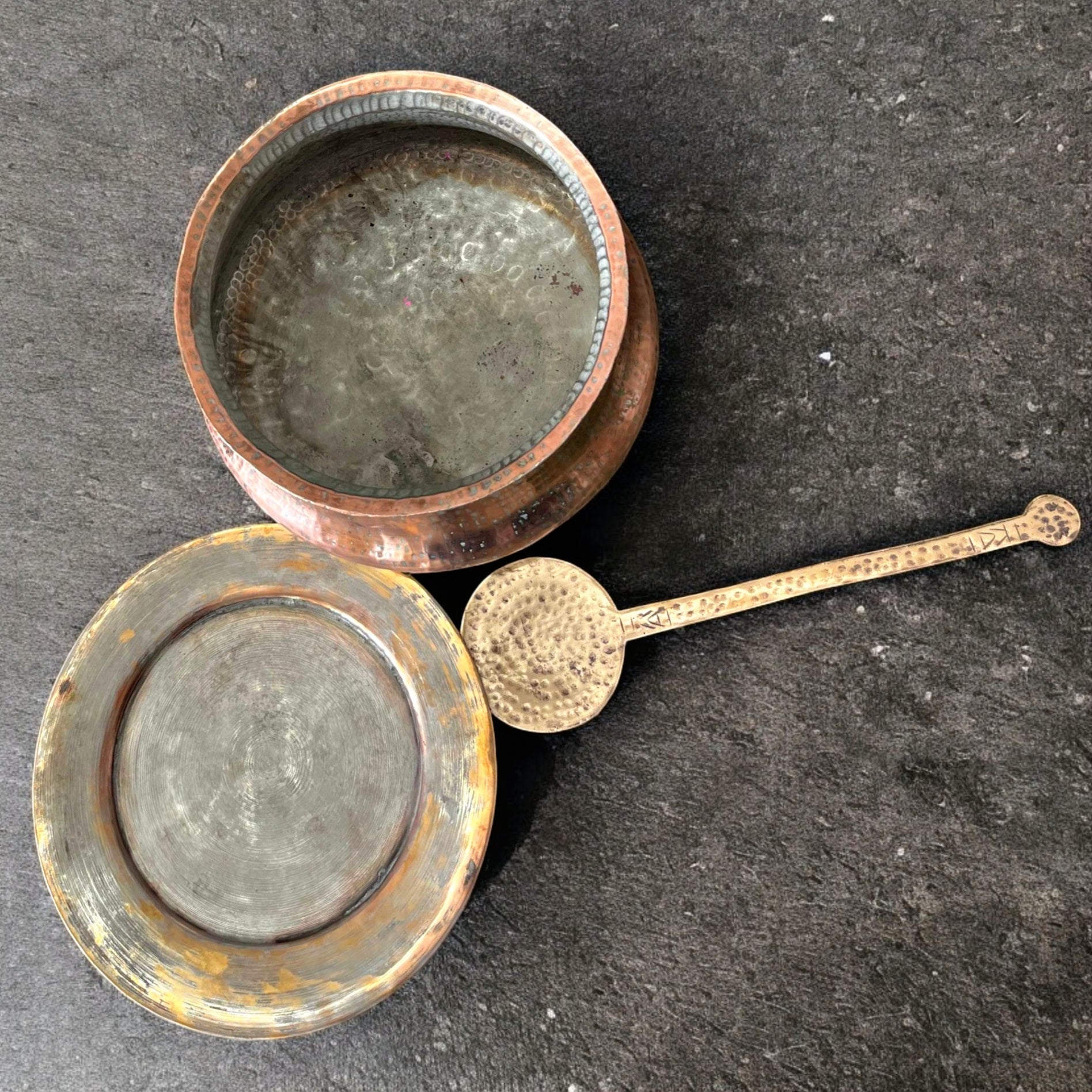 Antique Copper Deg with Lid & Ladle | Traditional Cooking Pot Set
