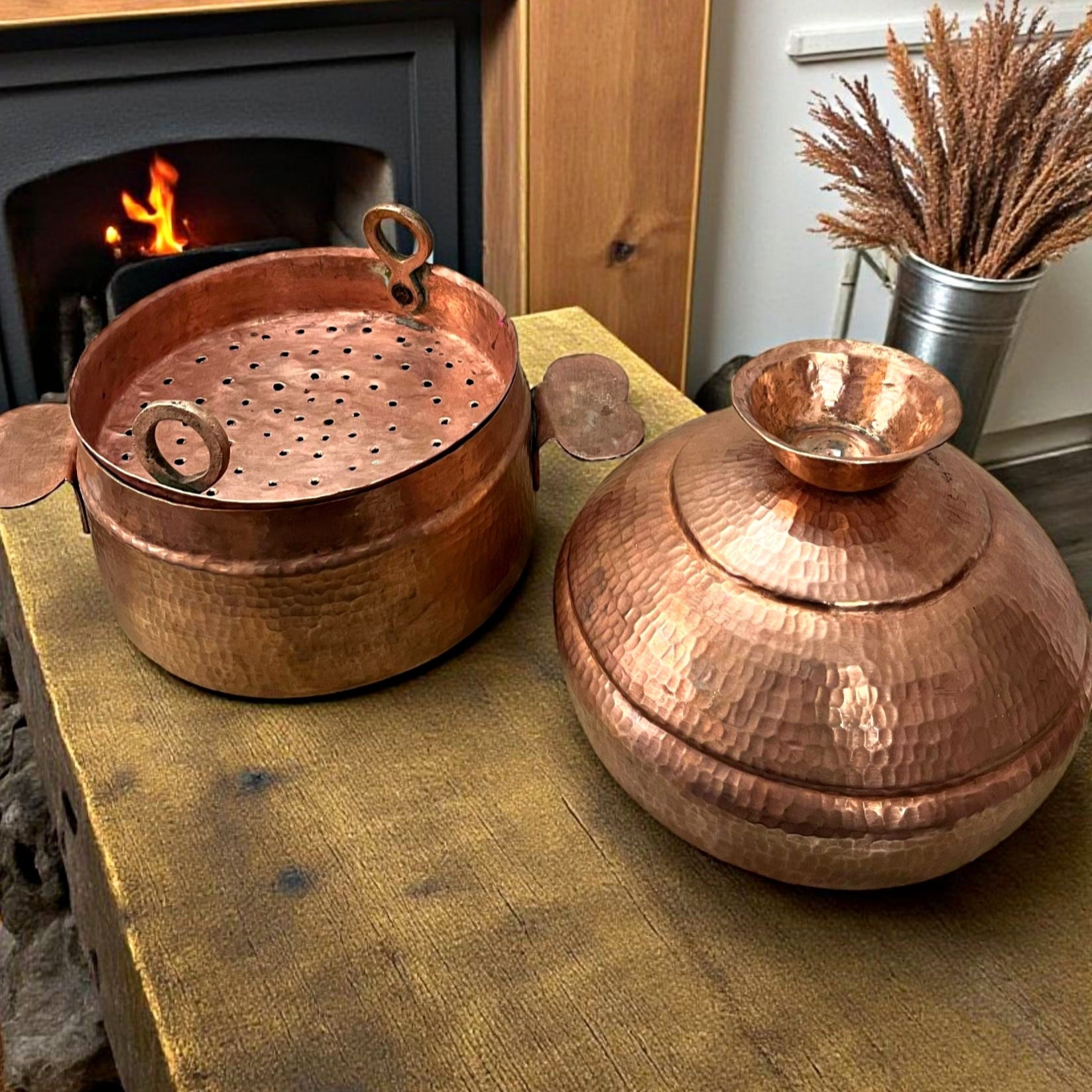 Ideal for rustic kitchen styling, heritage décor, gifting, or as a collectible copper utensil that reflects Indian folk art and culinary traditions.